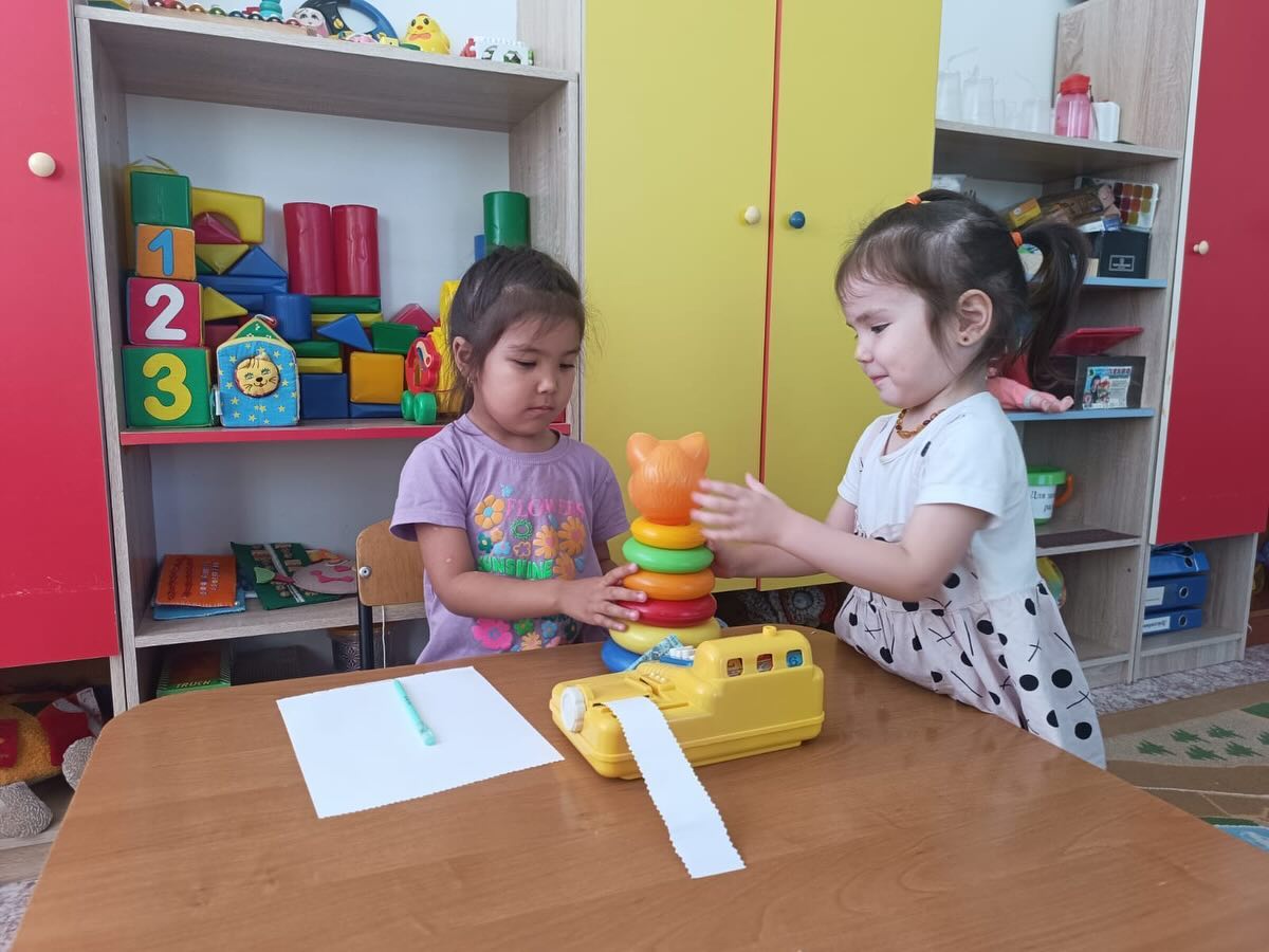 Мақсаты:заттарды тексеріп қарау,зерделеу, олардың көлемін көзбен өлшеу,көзбен көріп ойлауды, есте сақтауды,қиялды, ұсақ қол моторикасын дамыту.