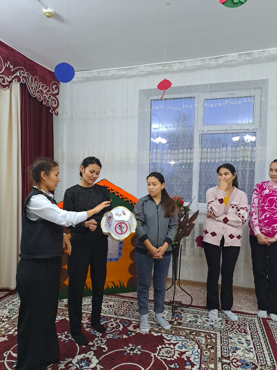 "Шұғыла" бөбекжайында 1 желтоқсан күні "Қауіпсіз терезе" тақырыбында жалпы ата-аналар жиналысы ұйымдастырылып өткізілді. Жиналыста директор Тулешова Бала қауіпсіздігіне байланыста көптеген деректерді атап айтты .Әдіскер Карасаева З.Б. "Бала өмірінің қауіпсіздігі маңызды " тақырыбында баяндама жасады.Тәрбиеші-лер : Ищанова мен Андрущенко "Мысықтың үйі" ертегісінен ата-аналармен қойылым көрсетсе, тәрбиешілер: Дуйсембина мен Кусмагамбетовалар тұрмыстағы қауіпті заттар атаулары туралы викторина ойнатып ,тәрбиеші лер: Назарова мен Дариябаевалар додекаэдр "қауіпсіздік ережелері" ( сұрақ-жауап) ойынын жүргізді.