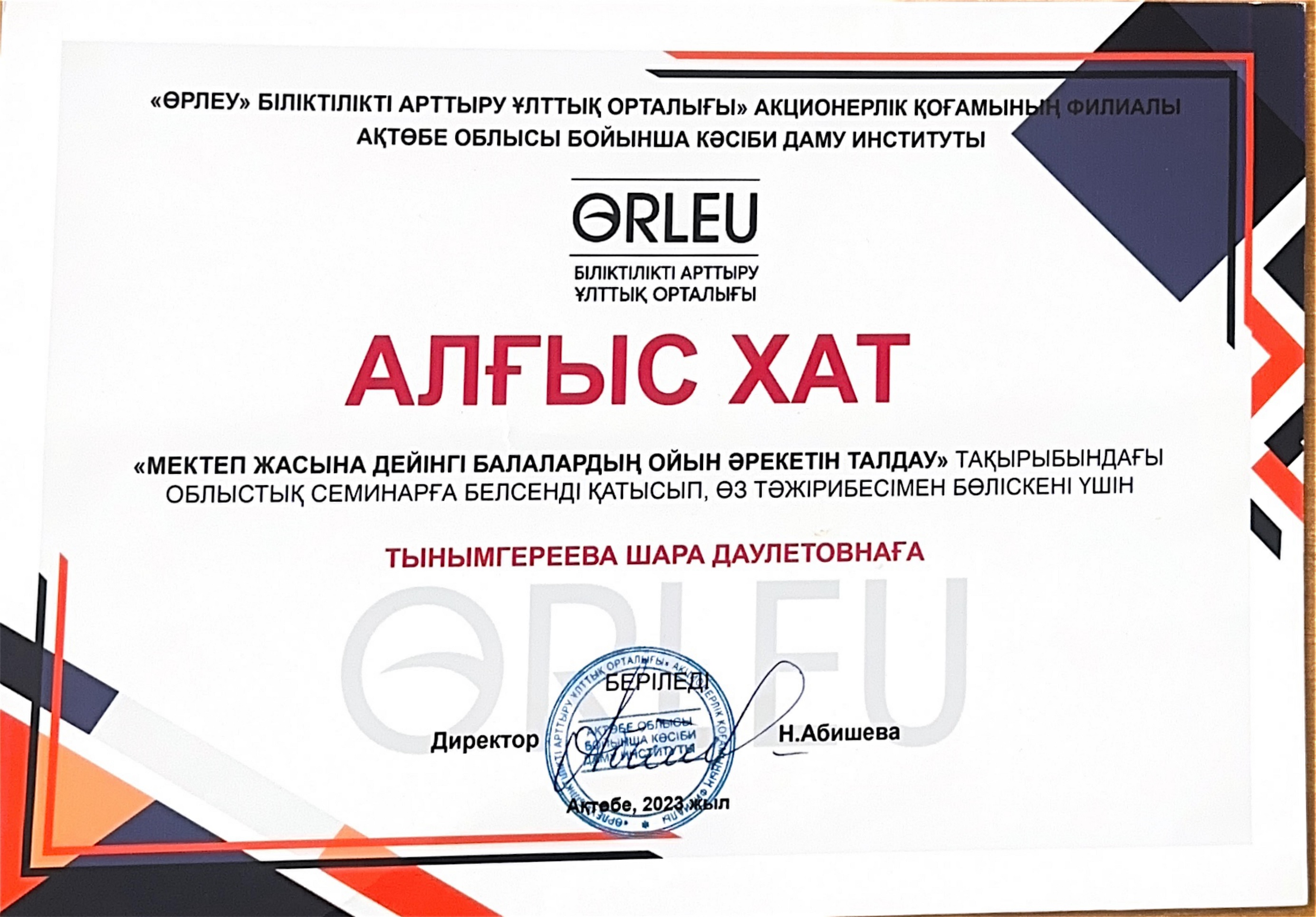«Ақтөбе облысының білім басқармасы Қобда ауданының білім бөлімі» ММ